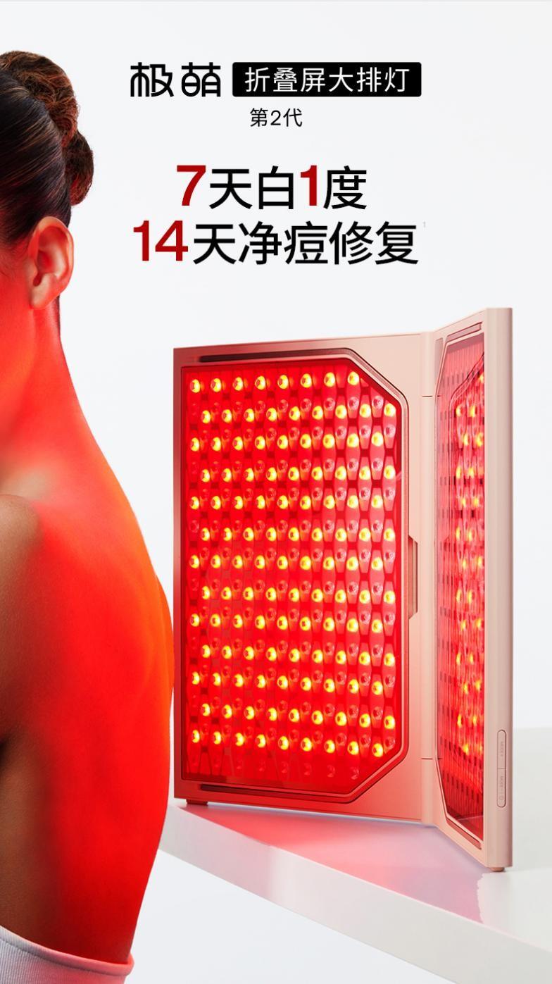 使用体验:0-180度折叠设计,90度照四肢、120度照全脸、180度躺平照全身,无死角护理;16种模式覆盖美白、祛痘、修护等需求,无需手动操作,躺着追剧就能美白,搭配极萌专研亮肤精华,美白效果还能再翻倍。