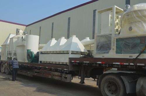 浙江衢州560木屑顆粒機組進行裝車發(fā)貨
