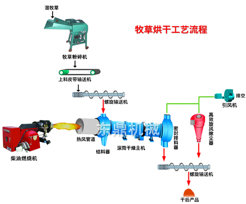 牧草烘干機生產線適用于大型牧草生產企業在牧草集中收獲季節對鮮牧草進行快速連續化烘干作業。隨著畜牧生產和加工業的發展,對牧草的社會需求數量和品質要求也不斷提高,促使牧草烘干機得到迅速發展。長期以來,我國的牧草產品加工一直采用傳統的自然 曬干的方法, 這種方法往往受到天氣條件的制約, 浪費嚴重, 加工時間長等諸多不足。東鼎機械開發的牧草烘干機生產線采用高溫快速烘干技術,使牧草在烘干機中迅速完成傳熱傳質的干燥過程,較好地保持了鮮牧草的營養成分,干燥后牧草氣味芳香,色澤深綠,適宜儲藏和運輸。 該牧草烘干機可以采用燃煤(重油、燃氣),通過高溫爐產生強大的干熱風,使物料在烘干筒中與熱風直接接觸,呈螺旋狀按曲線前進來達到烘干的目的,系統采用溫控調速系統,原料鍘切到成品入庫一條龍生產。